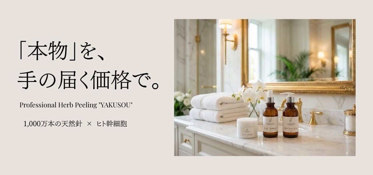 ”YAKUSOU ”EGF スプレー (YAKUSOU EGF SPRAY) ピーリング後の敏感な肌を瞬時に鎮静・修復。細胞レベルで立て直す、再生ミスト ■ 商品コンセプト 「守る」から「生み出す」肌へ。 ハーブピーリング施術後のデリケートな肌に、成長因子(EGF)をダイレクトに届けるスペシャルケアミストです。 活性化した肌の鎮静を行うと同時に、EGFがターンオーバーを強力に促進。ピーリングの効果を最大化し、ダウンタイムの軽減と、発光するようなツヤ肌の定着をサポートします。 ■ 3つの特長(Point) 1. 高濃度EGF(ヒトオリゴペプチド-1)配合 加齢とともに減少する細胞再生因子「EGF」を高配合。ピーリングによって活性化した肌細胞に、新しい細胞を生み出すシグナルを送ります。施術直後の吸収率が高まった肌に使用することで、通常時の数倍の浸透効果*が期待でき、肌の生まれ変わりを加速させます。 (※角質層まで) 2. 施術後の「赤み・ほてり」を瞬時に鎮静 抗炎症成分(グリチルリチン酸2Kやアラントイン等※想定成分)を独自のバランスで配合。ハーブピーリング特有のリアクション(赤み、チクチク感)を素早く落ち着かせ、不快感を取り除きます。微細なミスト状にすることで、摩擦を与えることなく肌の隅々まで成分を届けます。 3. 24時間「乾かない」保湿バリア形成 ただ水分を与えるだけでなく、肌表面に疑似的な皮脂膜(バリア)を形成。外部刺激から肌を守りながら、内側の水分蒸散を防ぎます。メイクの上からも使用可能なため、お客様のホームケア用としても最適です。 ■ 主要成分 EGF(ヒトオリゴペプチド-1): 細胞賦活、ターンオーバー促進 ヒアルロン酸Na: 高保湿、水分保持 アラントイン: 抗炎症、組織修復 プラセンタエキス: 美白、エイジングケア ■ サロンでの使用方法(施術フロー) ハーブピーリング拭き取り後: お仕上げの前に、顔全体にたっぷりと吹きかけ、ハンドプレスで優しく浸透させます。(鎮静・導入) お仕上げ: その後、専用クリーム等で仕上げてください。