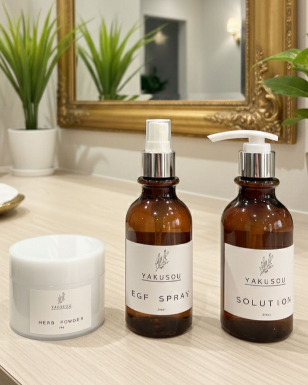 ・YAKUSOU ソリューション(溶解液):200ml パウダーと混ぜ合わせる、粘度のある専用導入液。