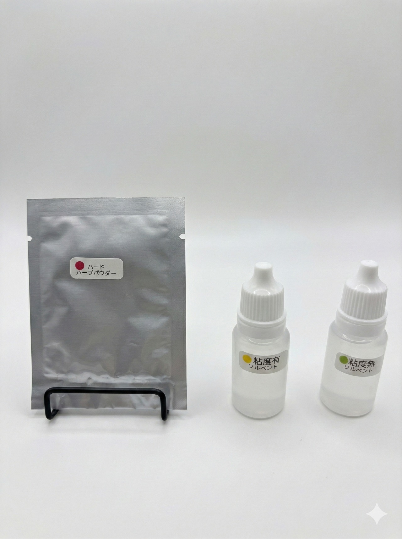 【使用方法】 パウダー全量をボウルに入れ、ソルベント(粘度あり・なし)を少しずつ加えながら、マヨネーズ状の硬さになるまで混ぜ合わせてください。 ※詳細な手順は同梱のマニュアルをご覧ください。